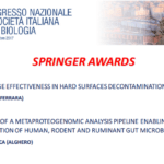Anche quest’anno abbiamo avuto l’onore e il piacere di poter premiare i tre migliori poster nell’ambito di diverse aree di Batteriologia – Micologia – Parassitologia; Virologia; Rapporti Microrganismo/Ospite con il Premio istituito dalla Fondazione Mario Campa pari a 500 euro. Inoltre, le Commissioni hanno selezionato altri due poster che, per l’alto valore scientifico, hanno ricevuto lo Springer Award for Best Posters consistente in un buono per libri della Springer del valore di 180 €.