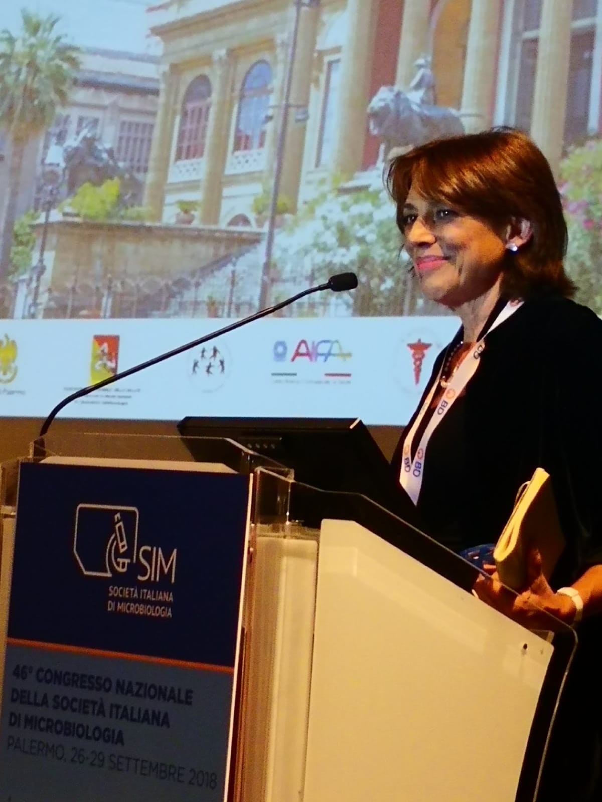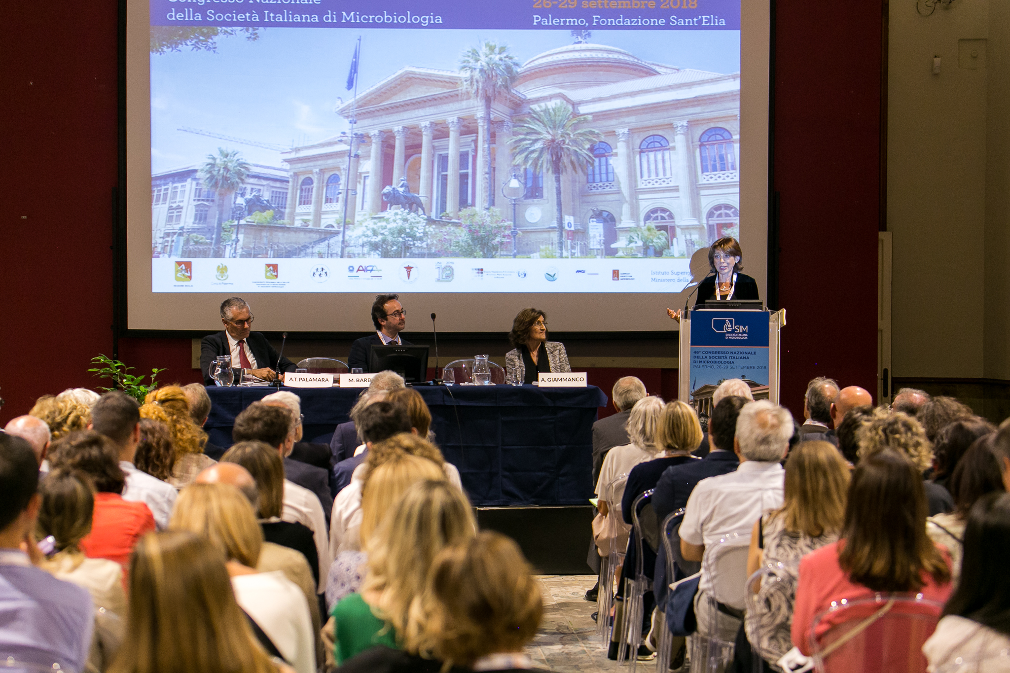 La cerimonia si è aperta con l’intervento del giornalista scientifico, il Dott. M. Barberi (www.microbioma.it). Notiziabilità e scienza sono due mondi separai? Qual è il ruolo degli esperti? E, il giornalismo scientifico come si deve interfacciare con gli esperti? Il Dott. Barberi, sostiene la collaborazione fra media e scienziati e invita la SIM a fare il primo passo e formare a quello che è il “punto di vista del microbiologo”. Il giornalista ha presentato poi la Prof. A. Giammanco, Presidente del Comitato Organizzatore del Congresso, la quale, oltre a ringraziare tutti i presenti e gli organizzatori, ha sottolineato il suo entusiasmo per avere, dopo 28 anni, il congresso SIM di nuovo a Palermo, sede di una scuola microbiologica di grande rilevanza nazionale.